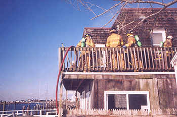 A 3:08 pm fire on Tuesday, Feb. 4, 2003 damaged a bayfront Wildwood Crest home. The two story frame building was damaged when a worker's torch ignited the rear wall.